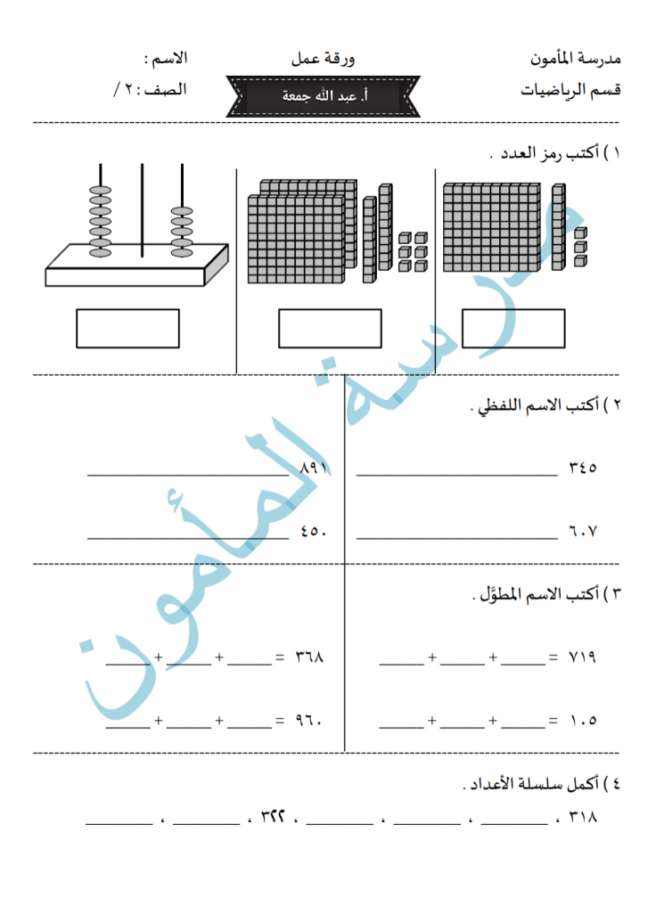ورقة عمل للصف الثاني الوحدة ١٢