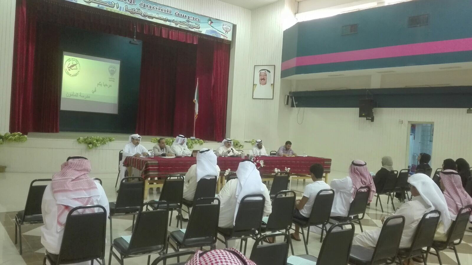 وقال النصار على هامش الاجتماع ان مجلس ادارة المدرسة حريص كل الحرص على اشراك النخب من اولياء الامور لاشراكهم في العملية التعليمية.