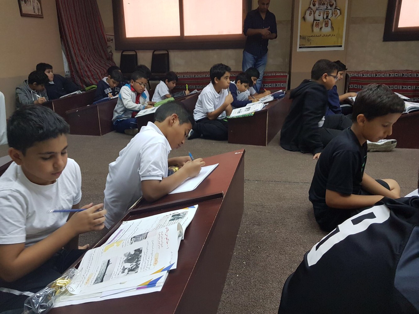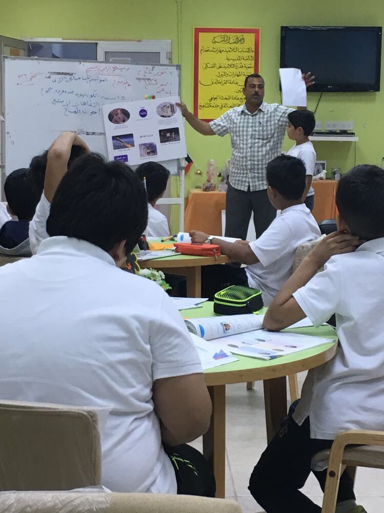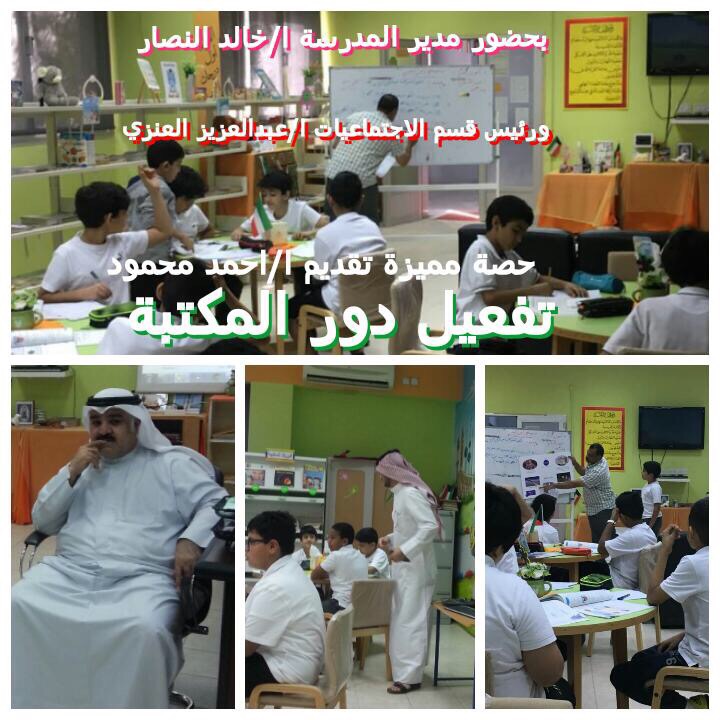 نظم معلم الاجتماعيات ا/ احمد محمود حصته الدراسية في مكتبة المدرسة تفعيلاً لدورها التربوي بحضور مدير المدرسة ا/ خالد النصار وسط تفاعل طلابي كبير.
