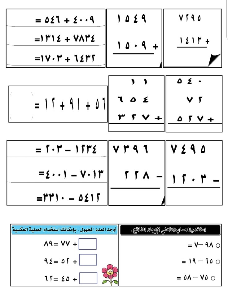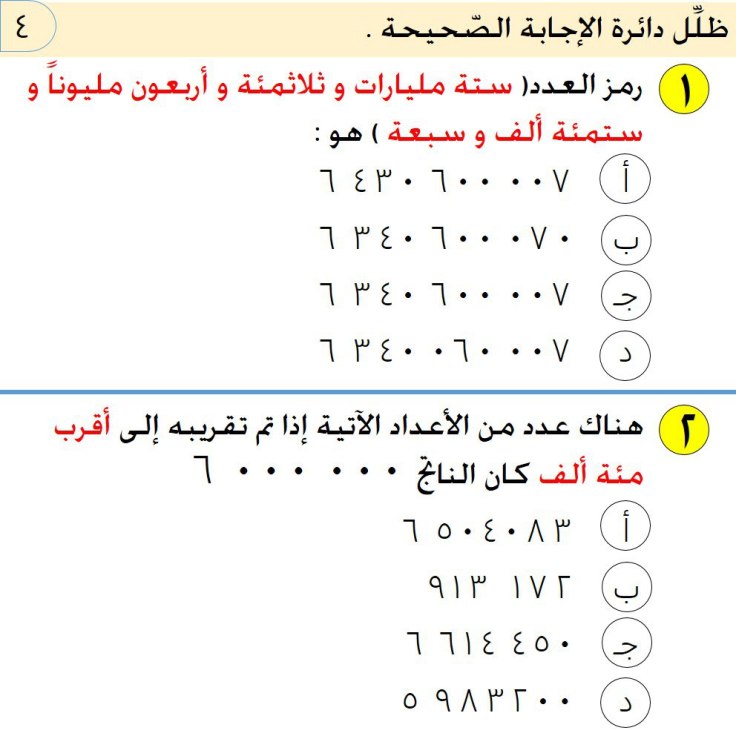 اسئلة مراجعة عن الوحدتين السابعة والعاشرة في مادة الرياضيات للصف الرابع
