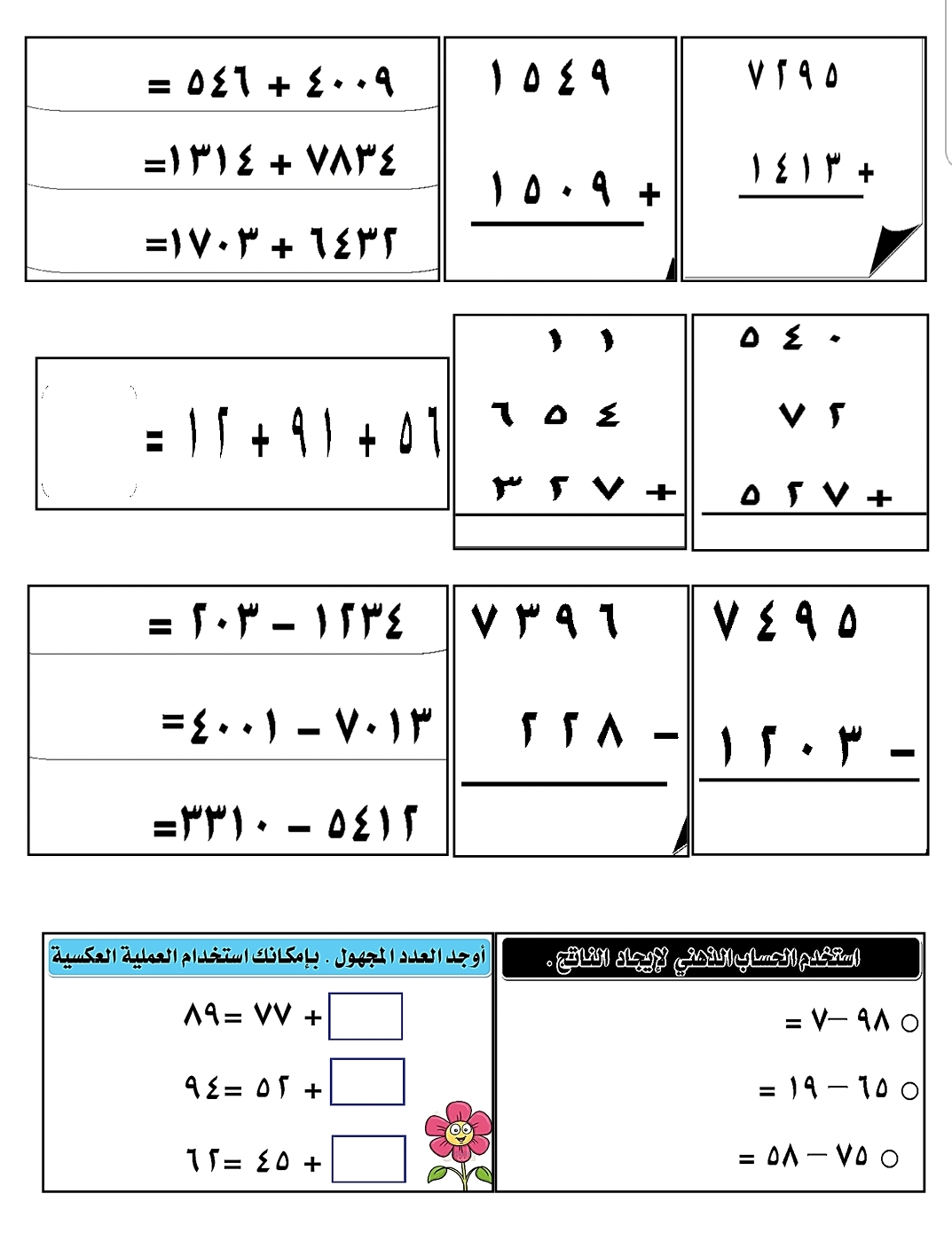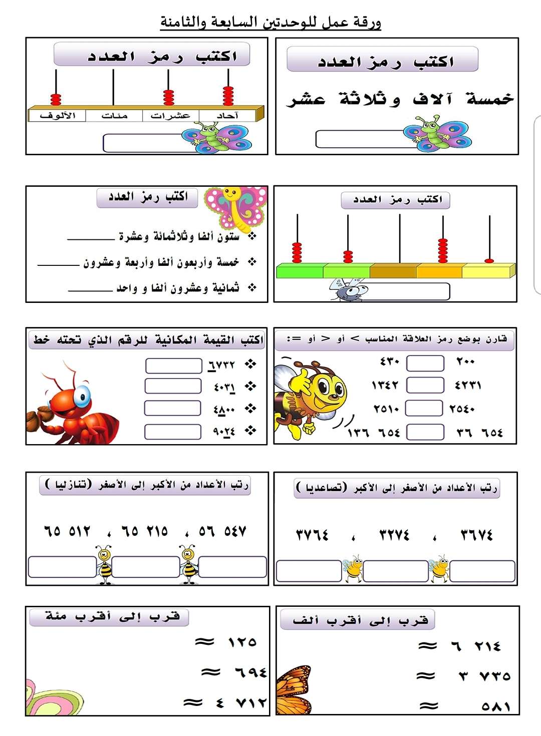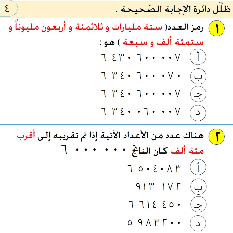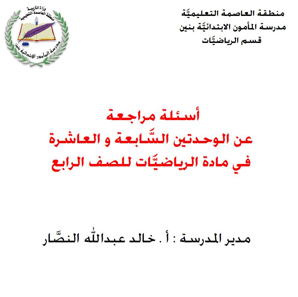 اسئلة مراجعة عن الوحدتين السابعة والعاشرة في مادة الرياضيات للصف الرابع