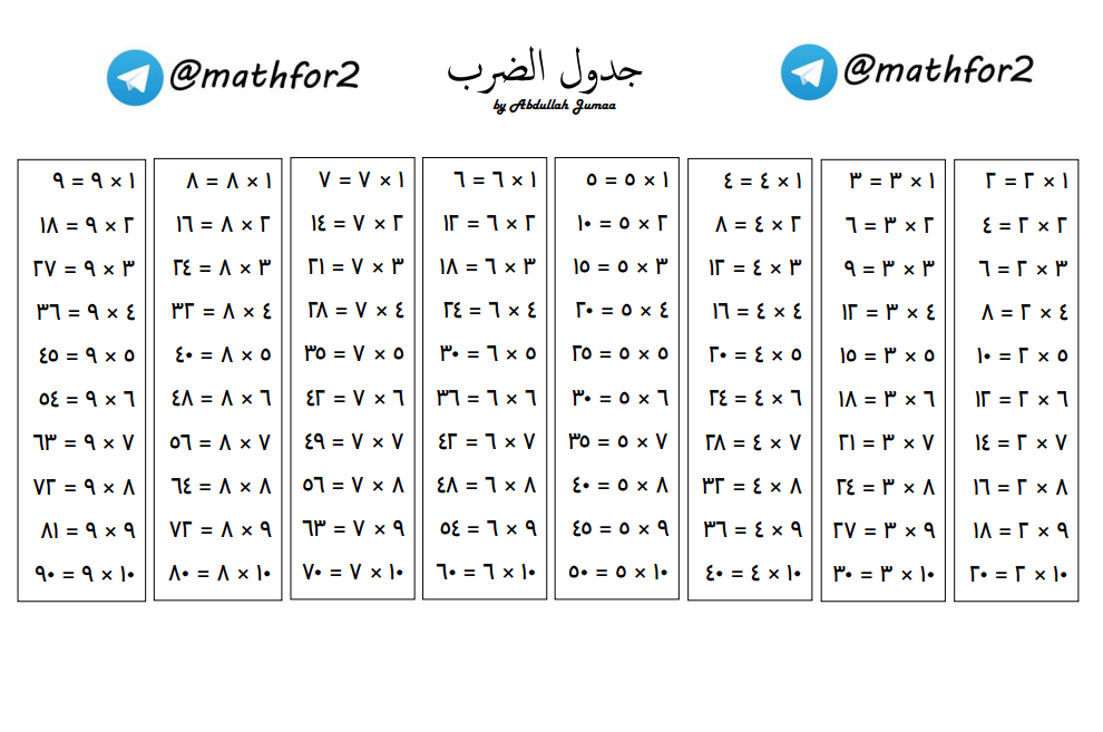 ورقة عمل عن جدول الضرب الصفين الثاني و الثالث
