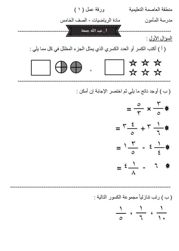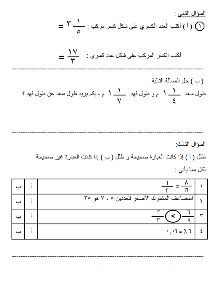 اسئلة مراجعة عن الوحدتين السابعة والعاشرة في مادة الرياضيات للصف الرابع