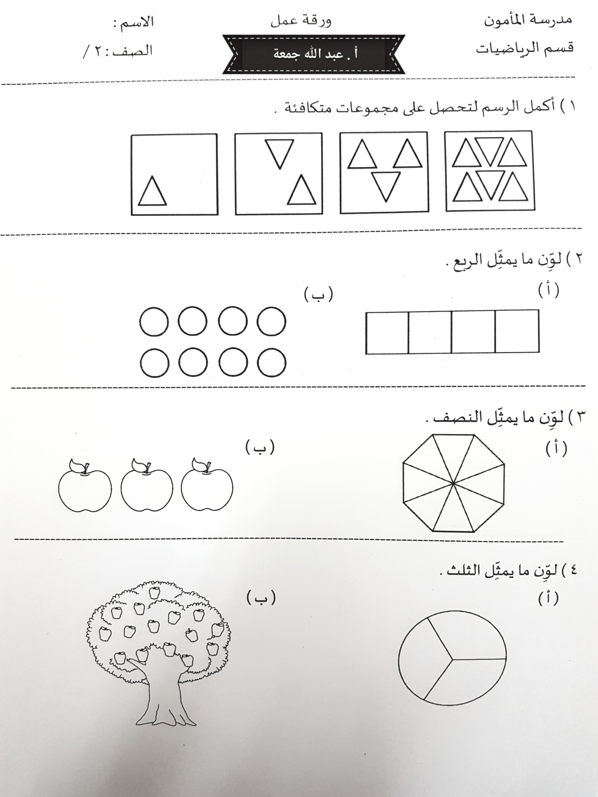 ورقة عمل للصف الثاني / الوحدة العاشرة ١