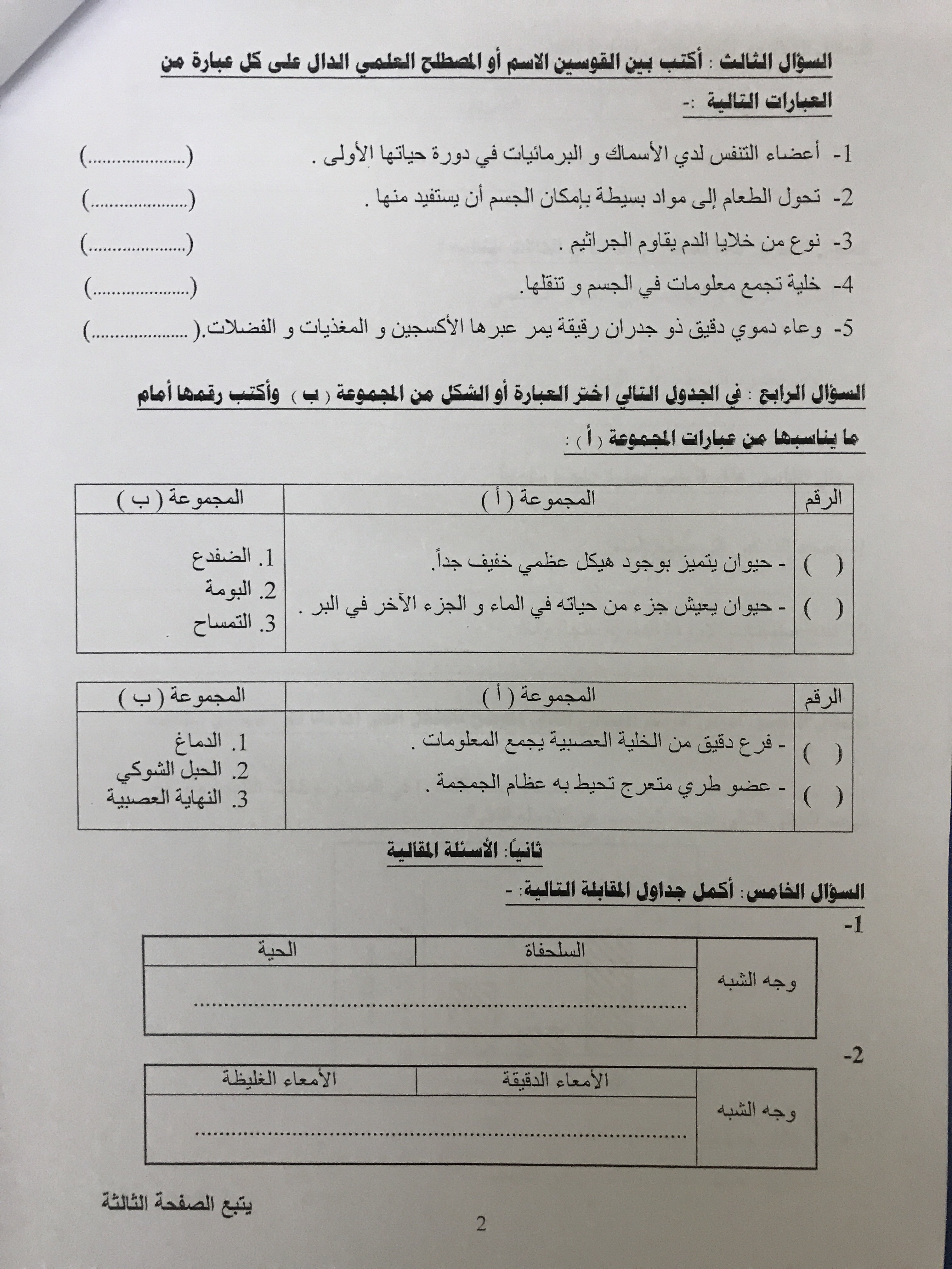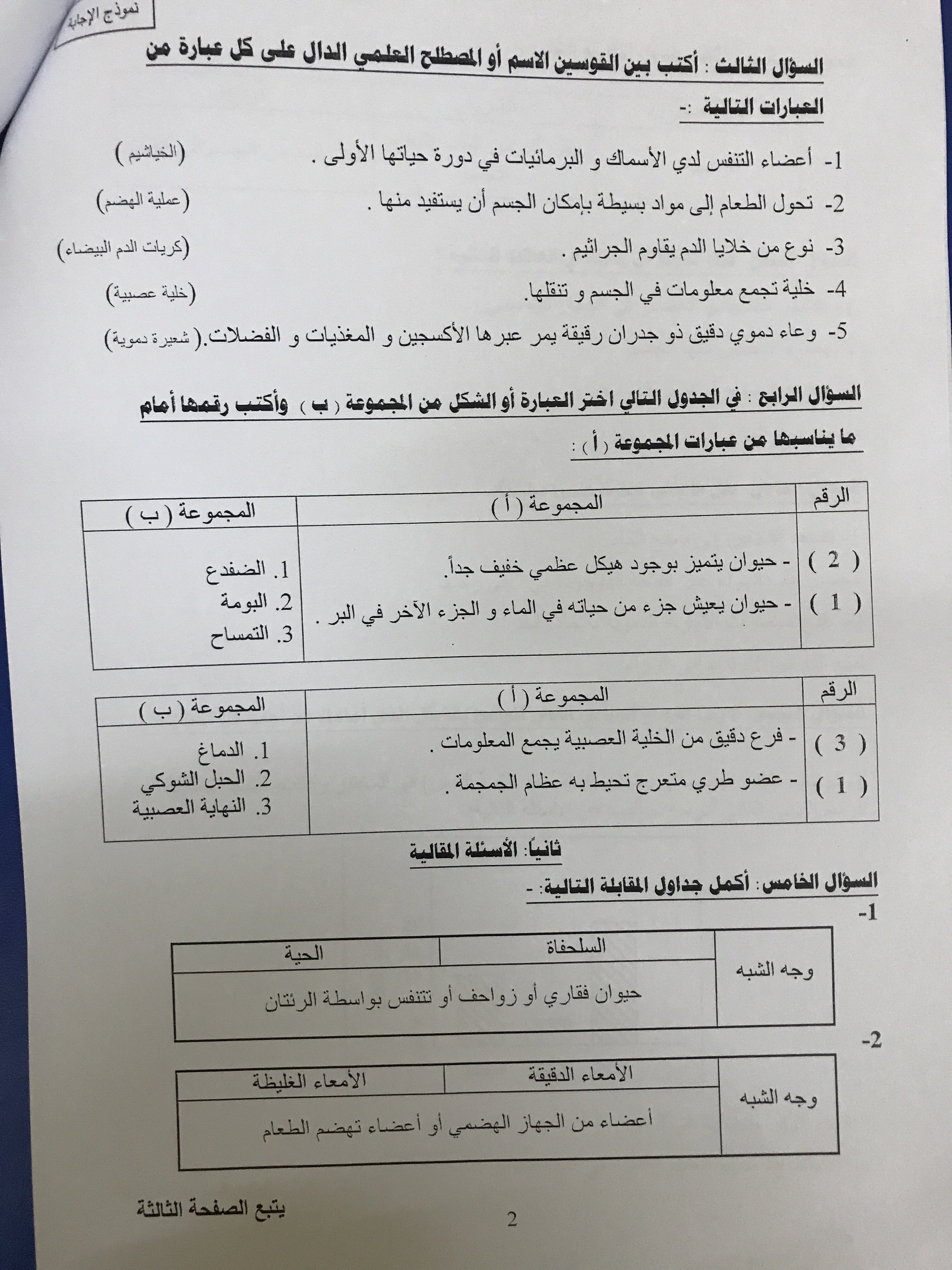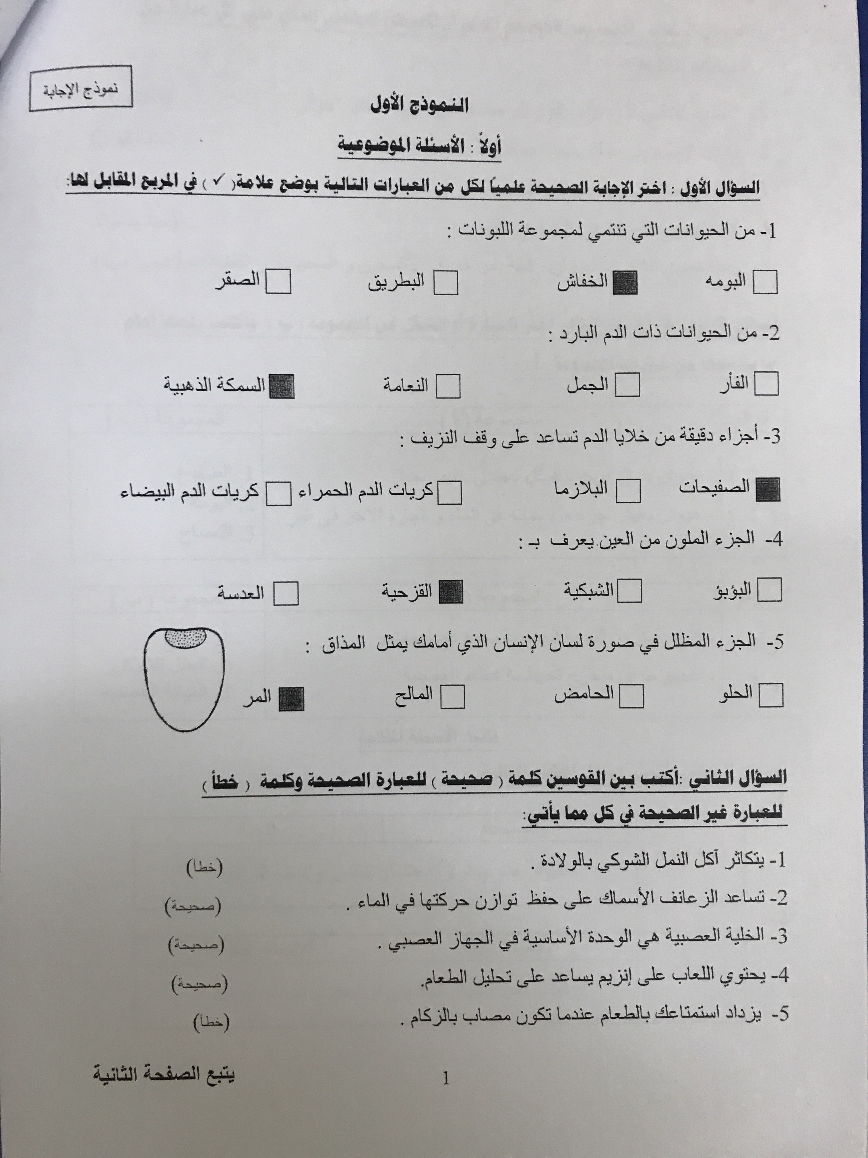 تدريبات اختبار نهاية الفصل الدراسي الاول