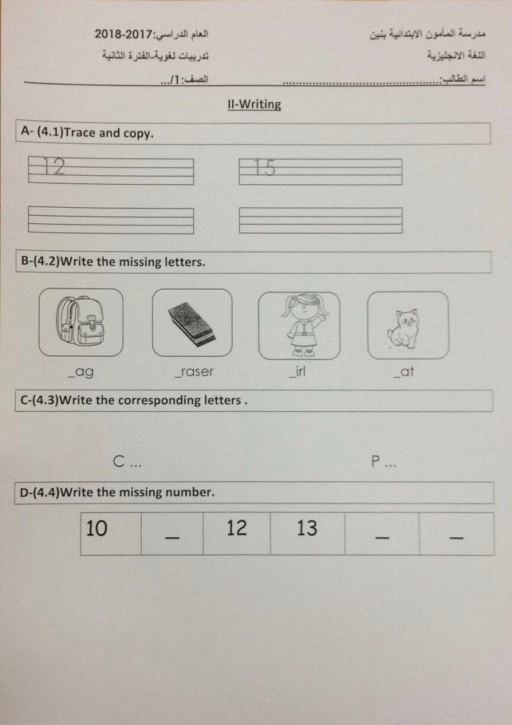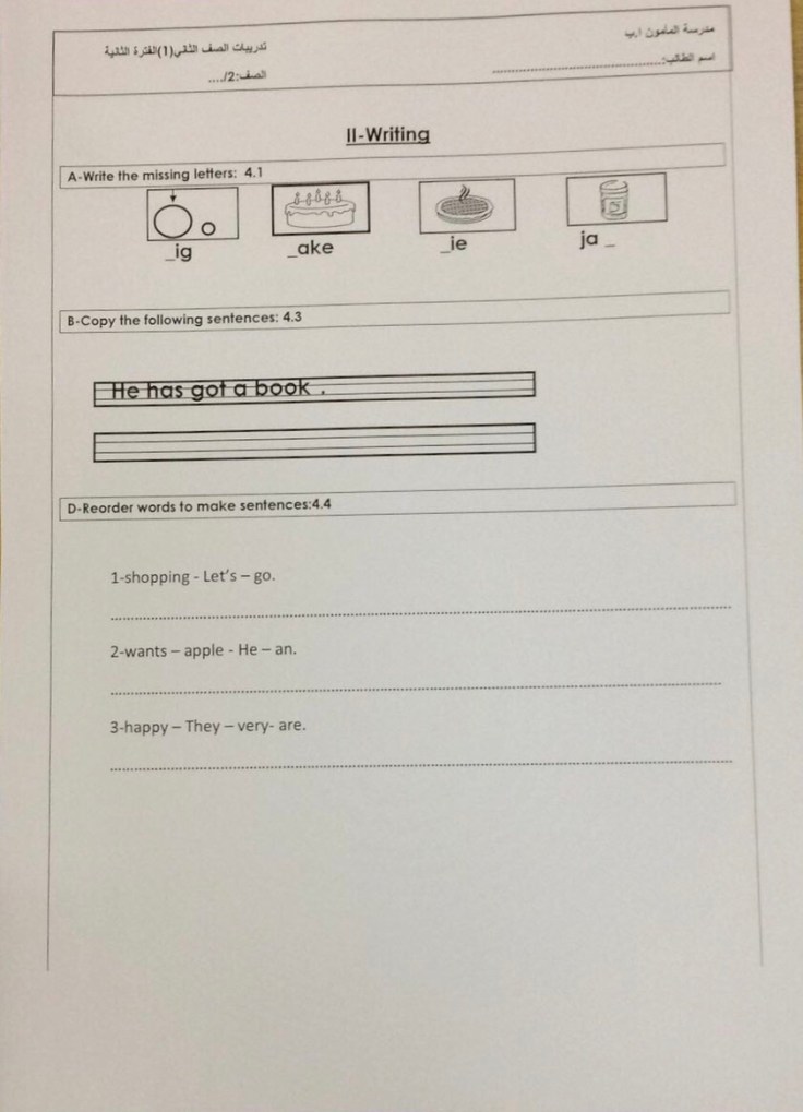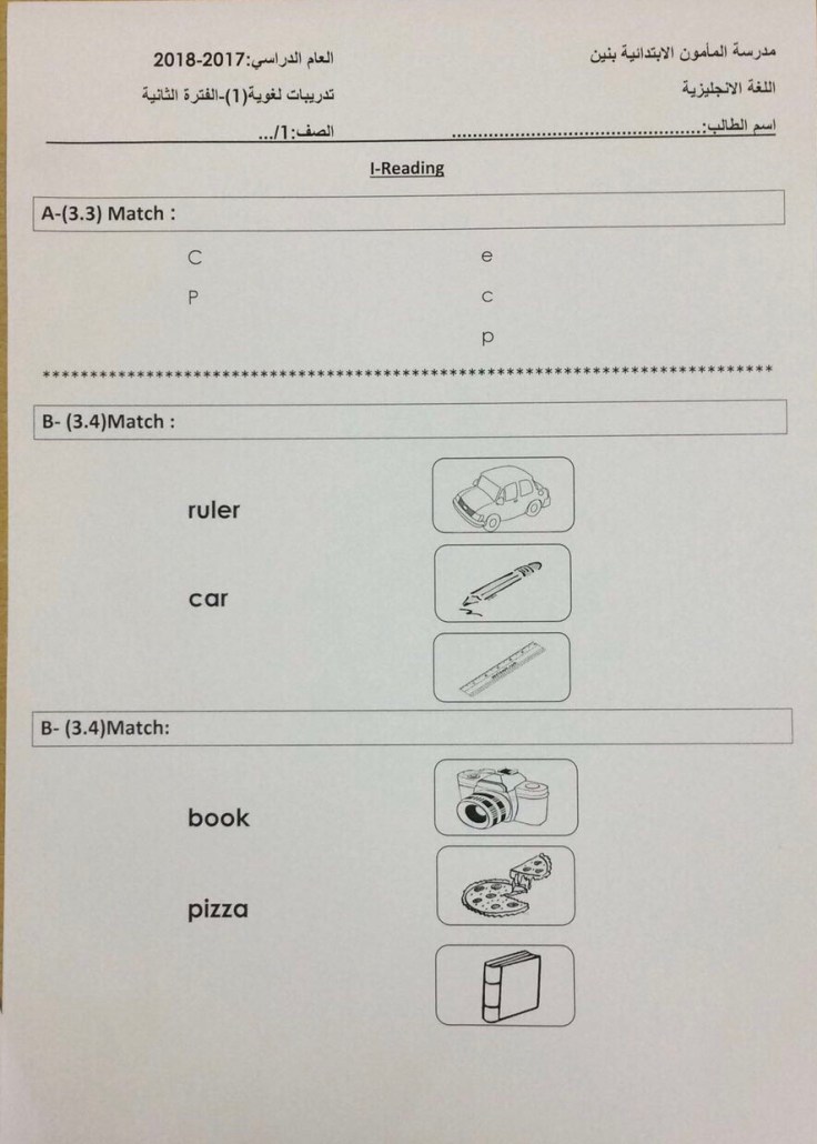 تدريبات للصف الاول