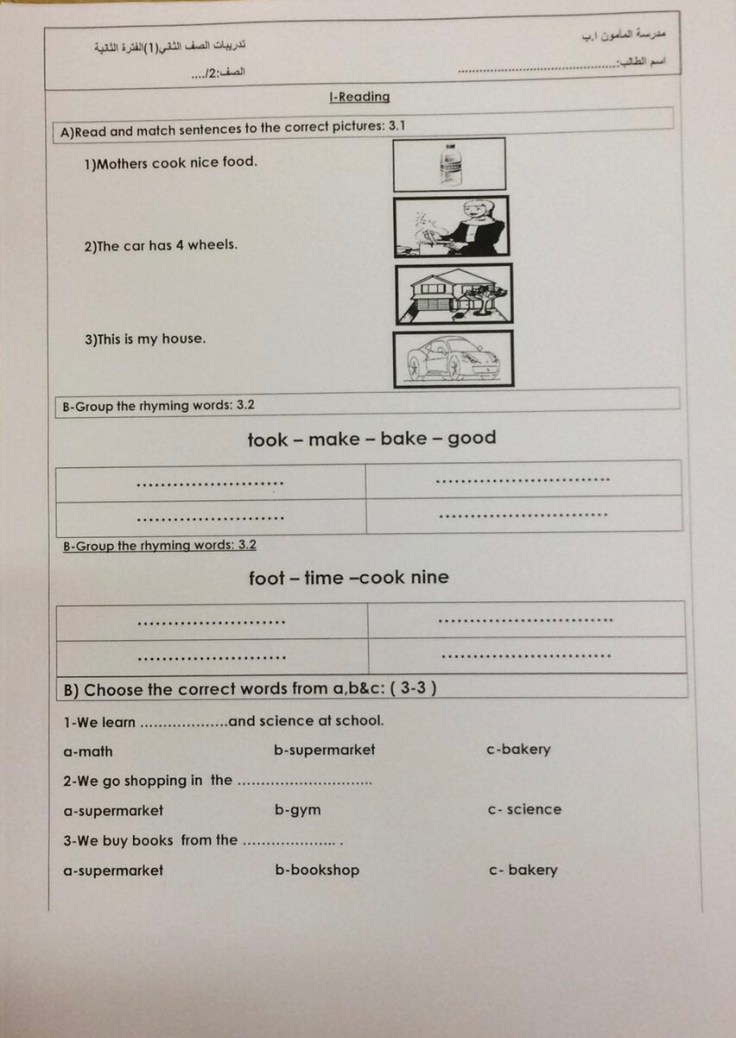 تدريبات للصف الأول