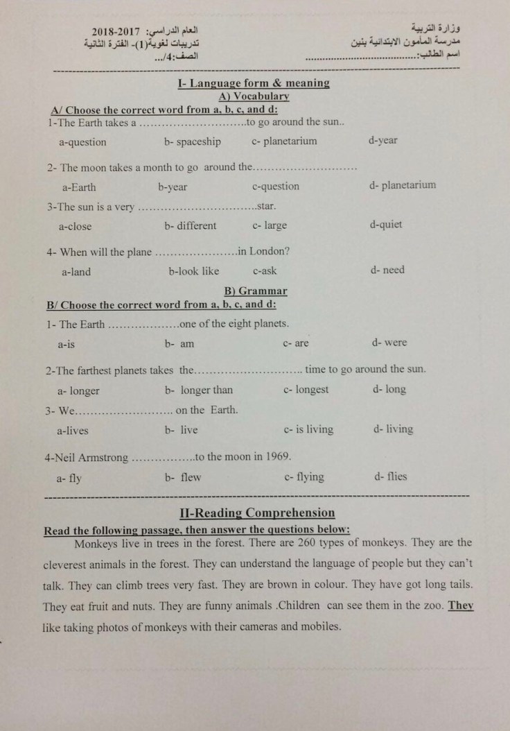 تدريبات للصف الرابع