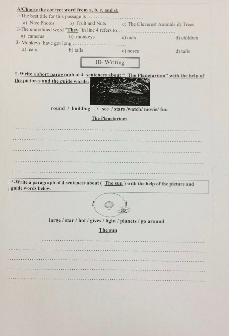 تدريبات للصف الثالث