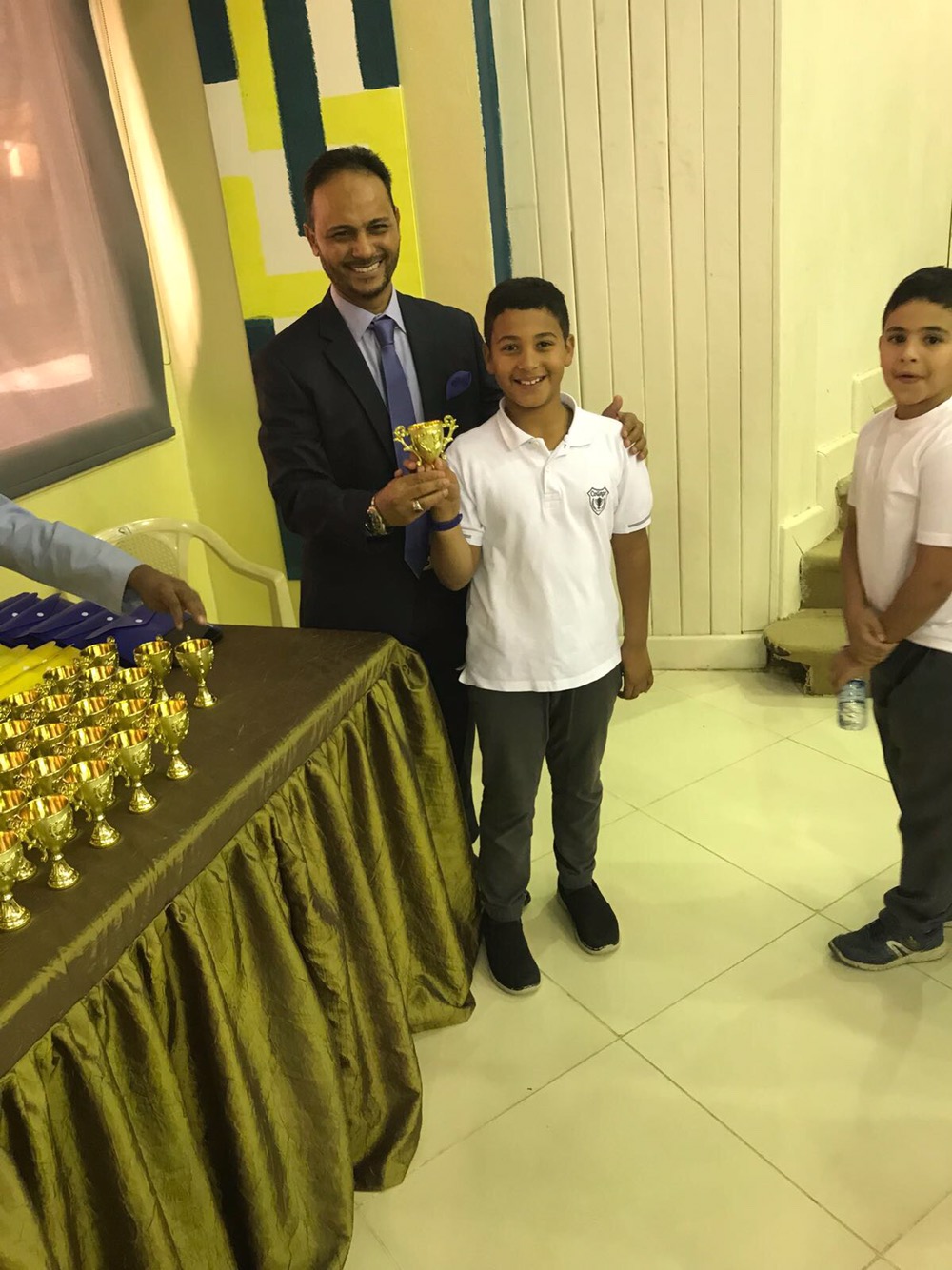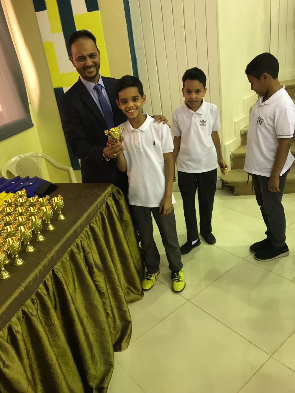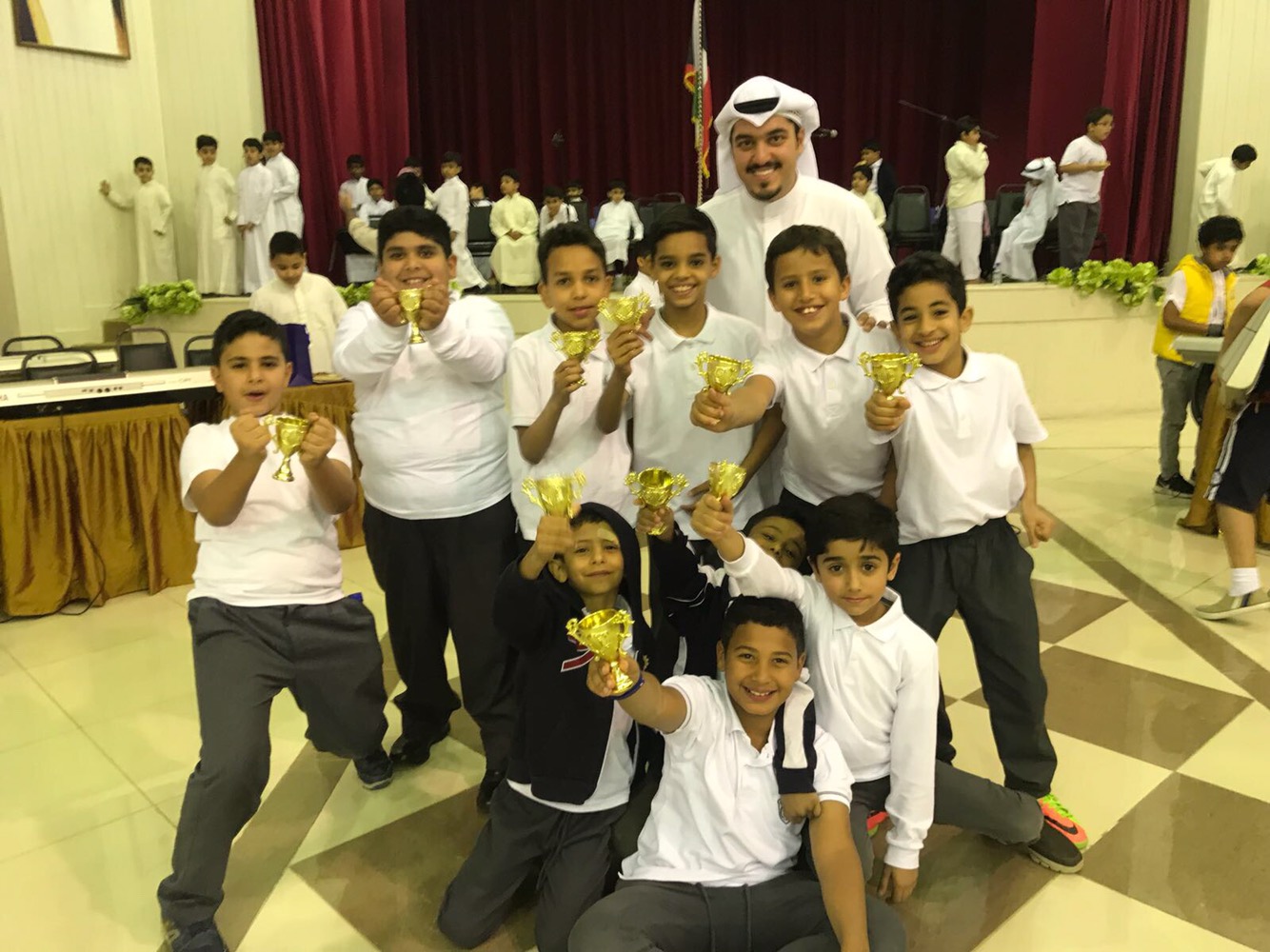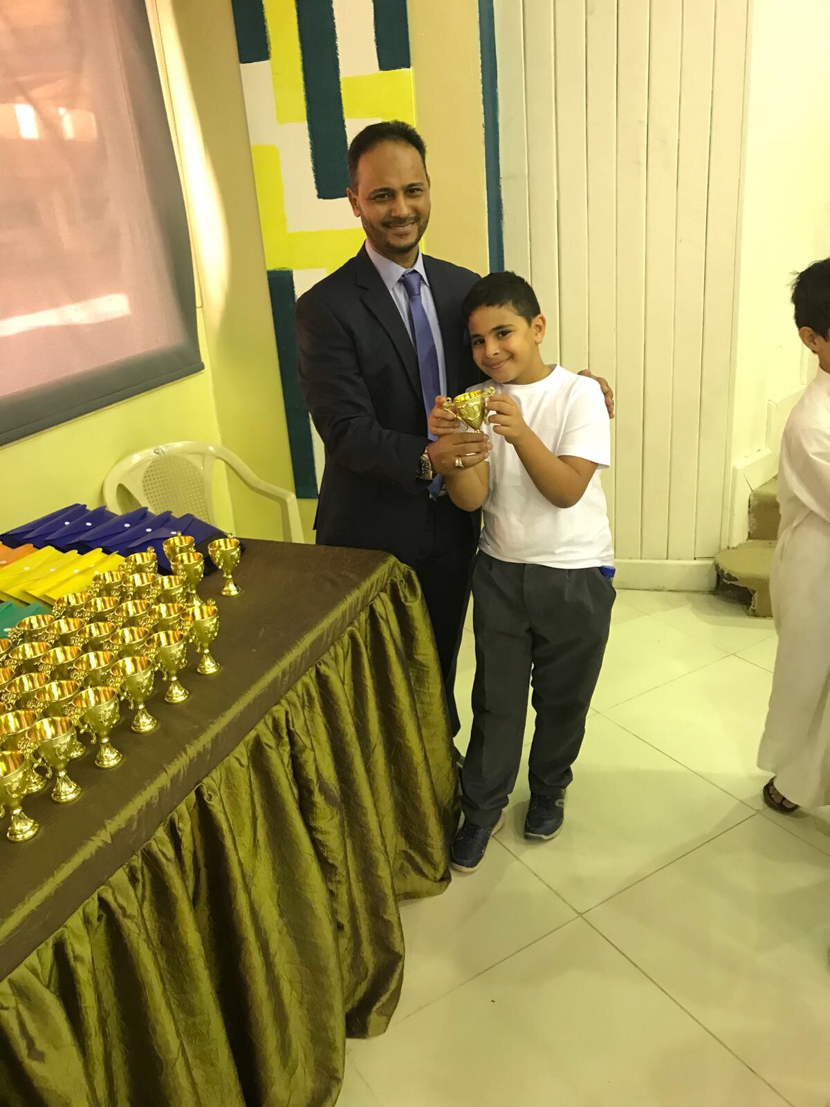 وكرم مدير المدرسة ا/ خالد النصار صباح اليوم الطالب الصقر وتسليمه الكأس الذهبي تكريماً وتشجيعاً لجهوده لرفع أسم مدرسة المأمون عالياً.