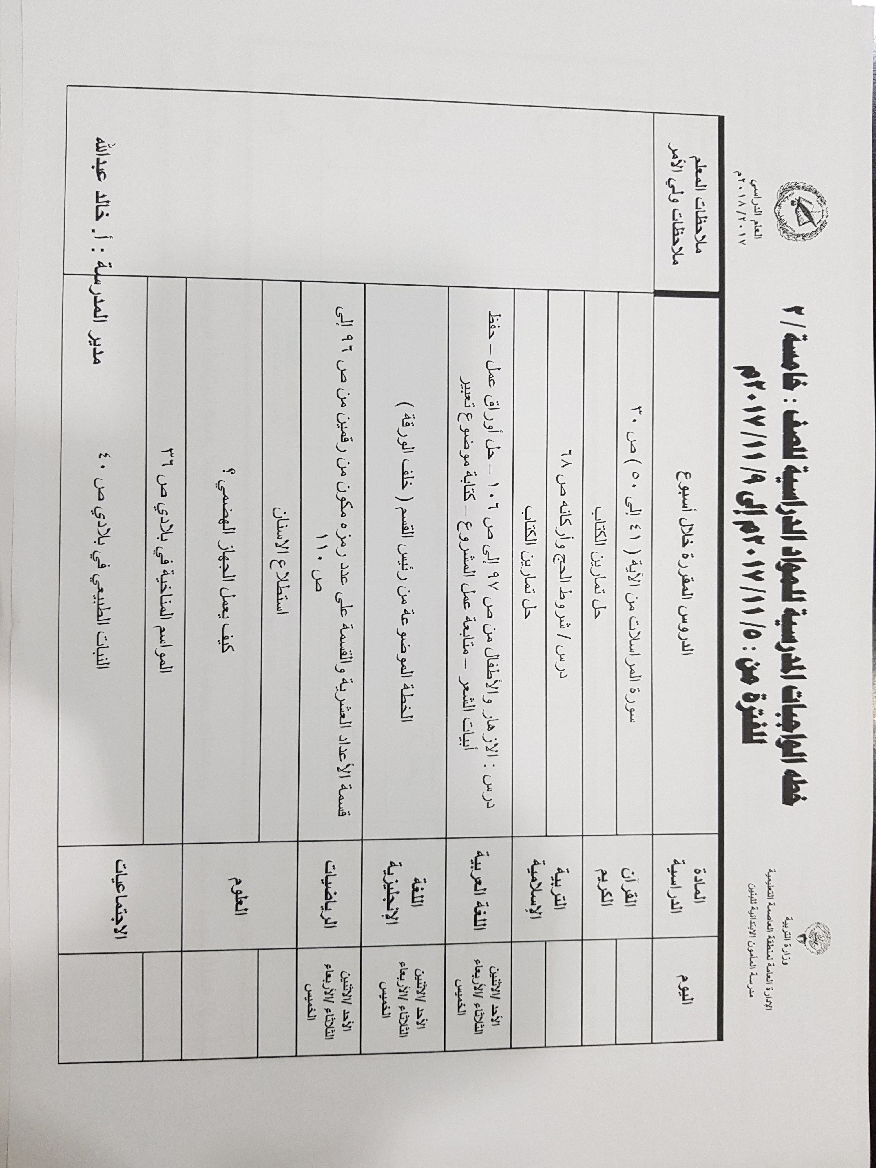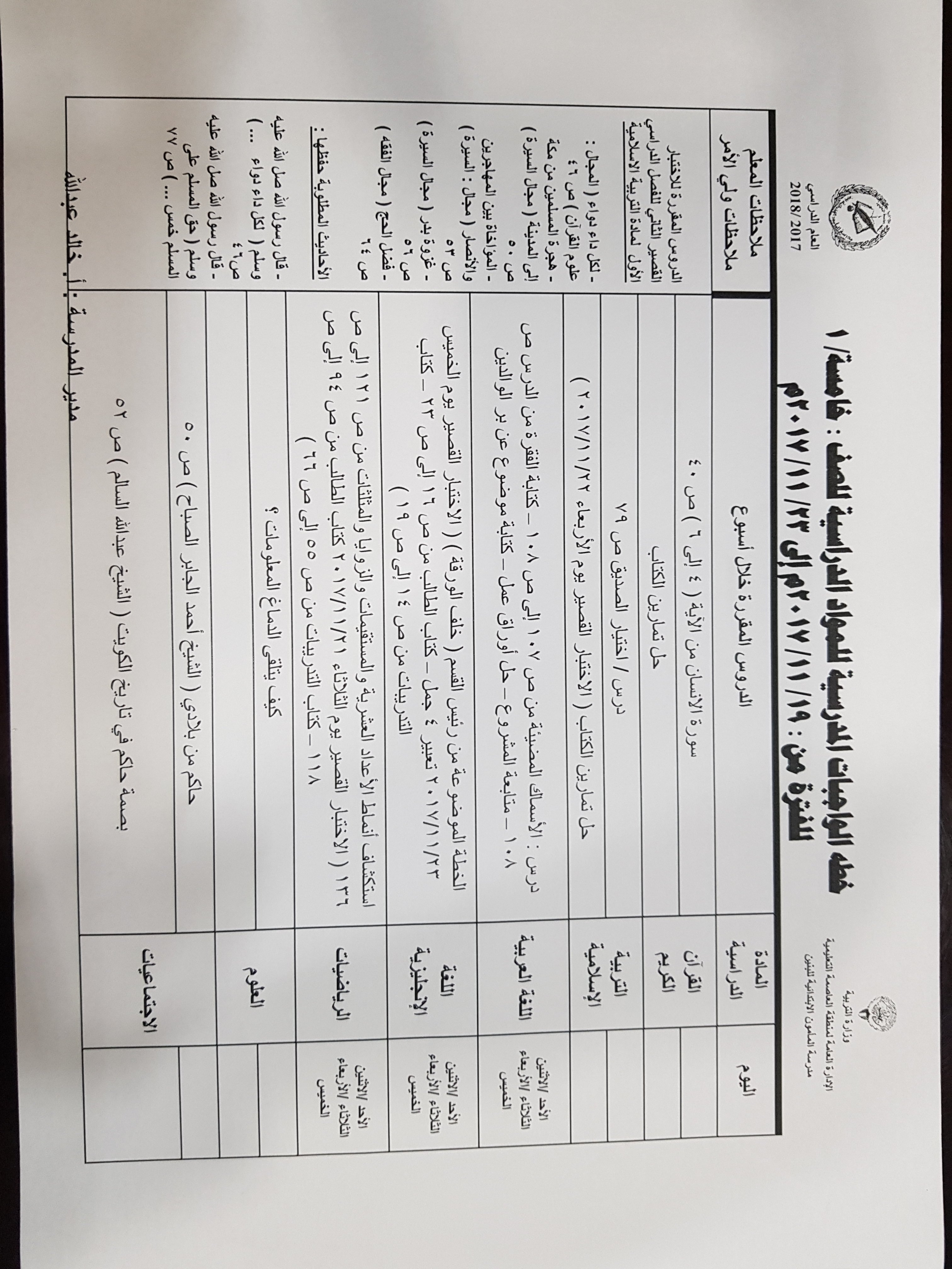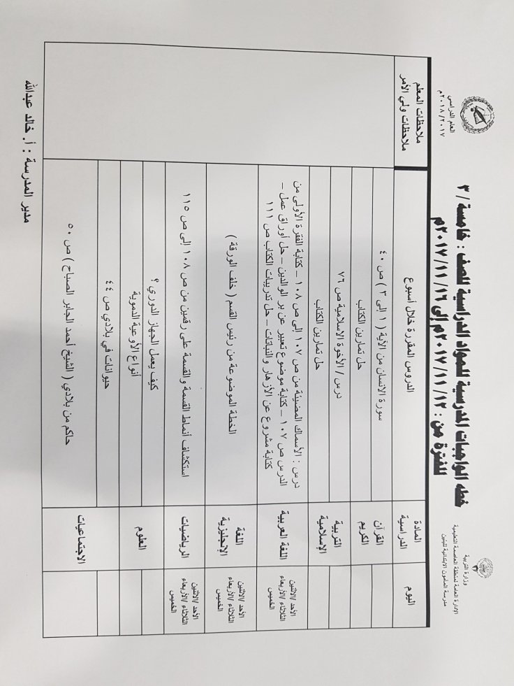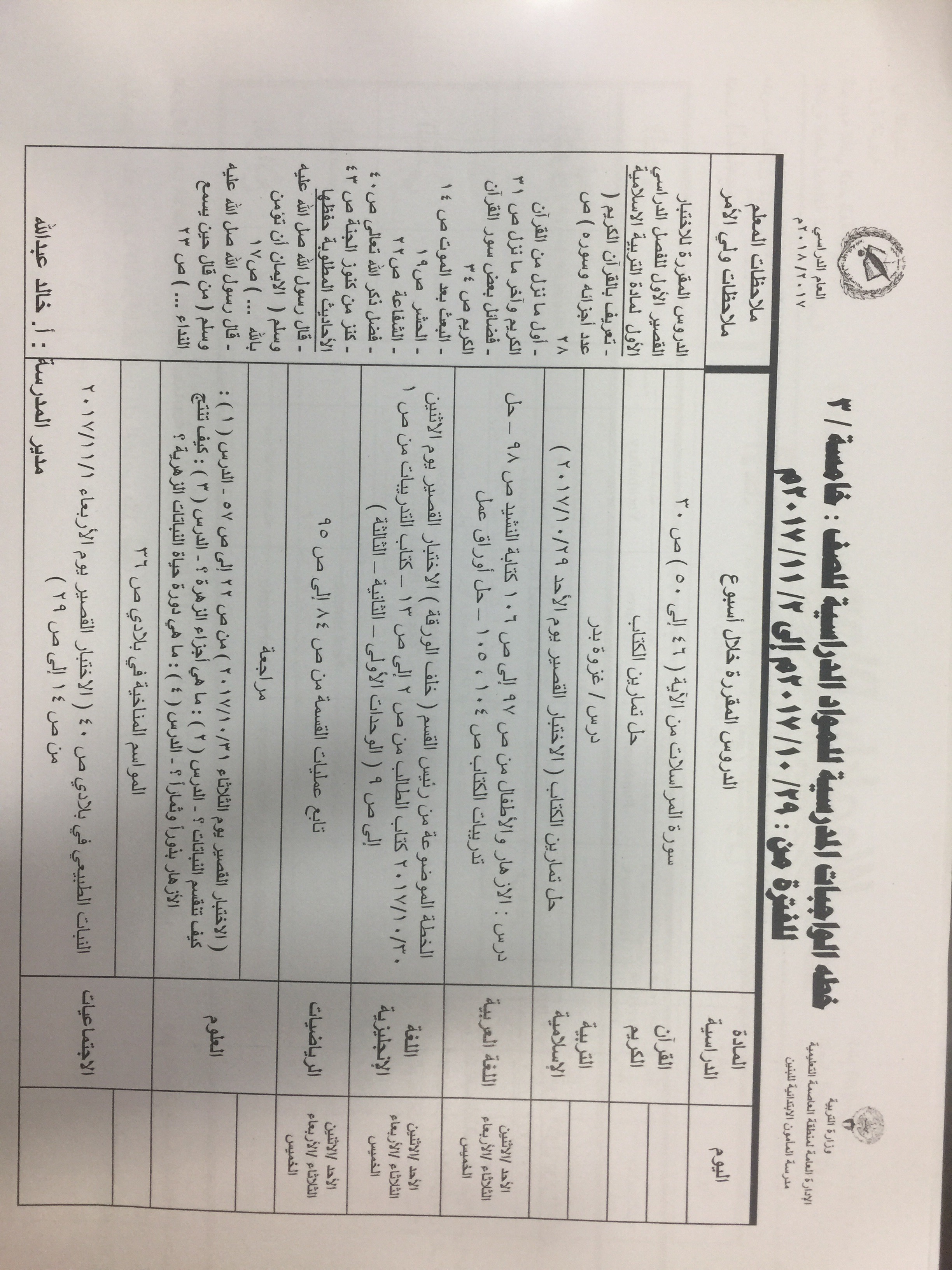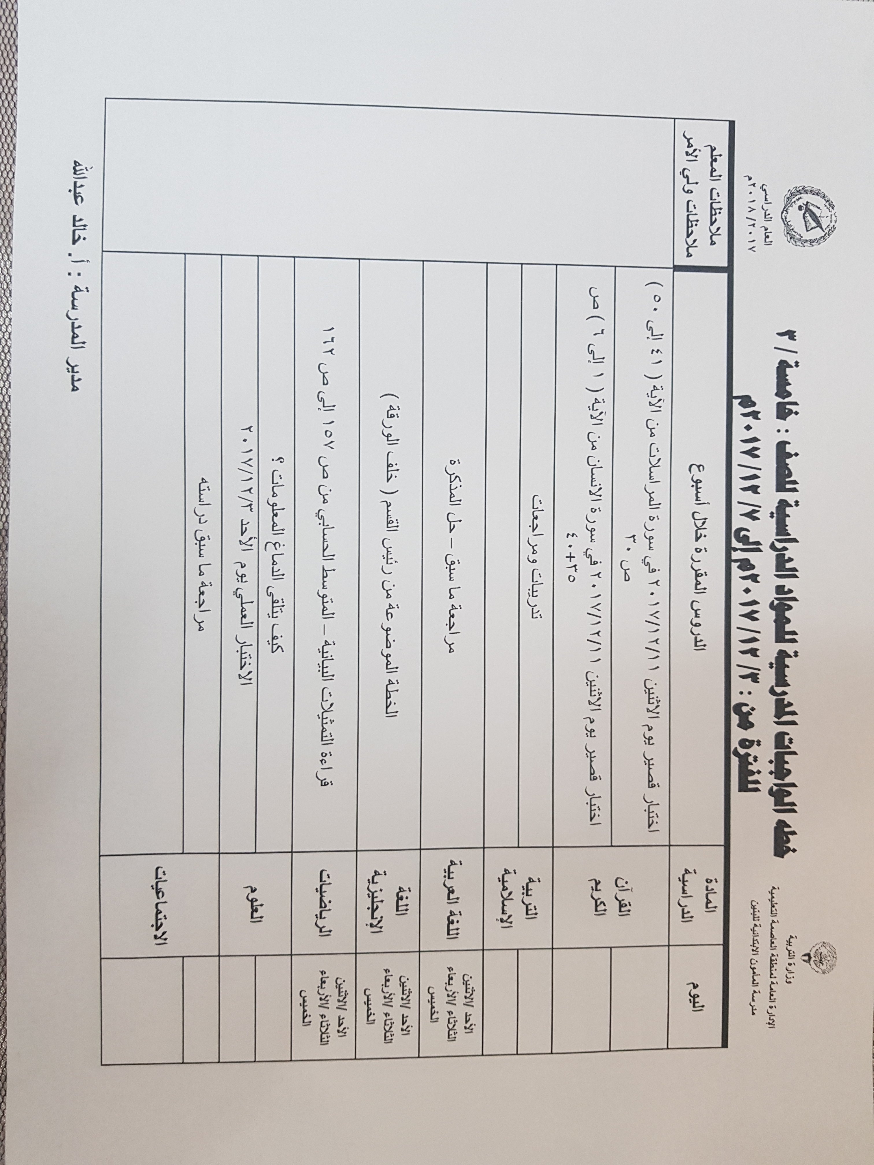 جدول اختبارات الصف الخامس لنهاية الفصل الدراسي الاول