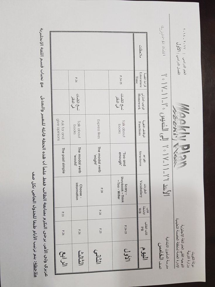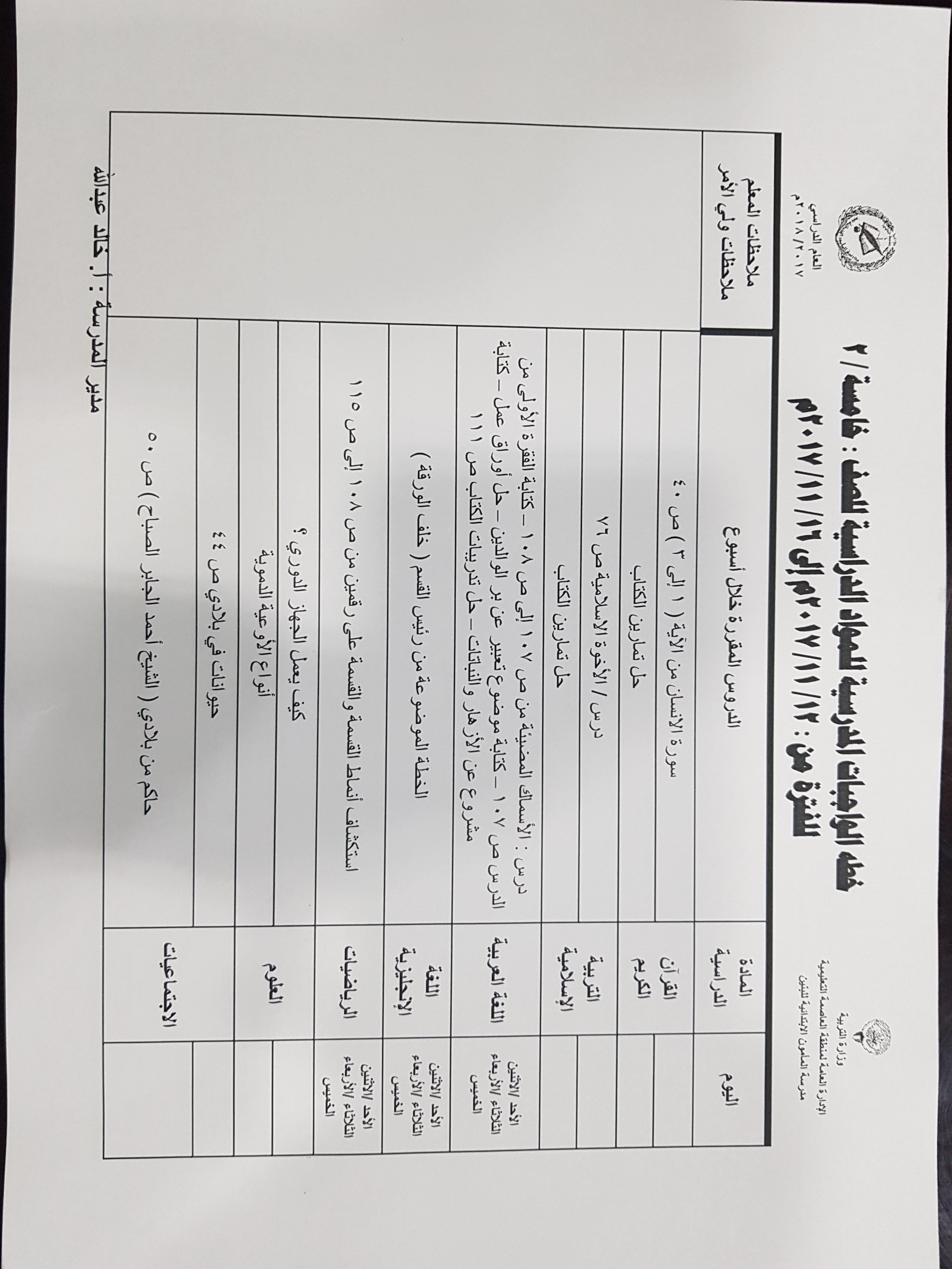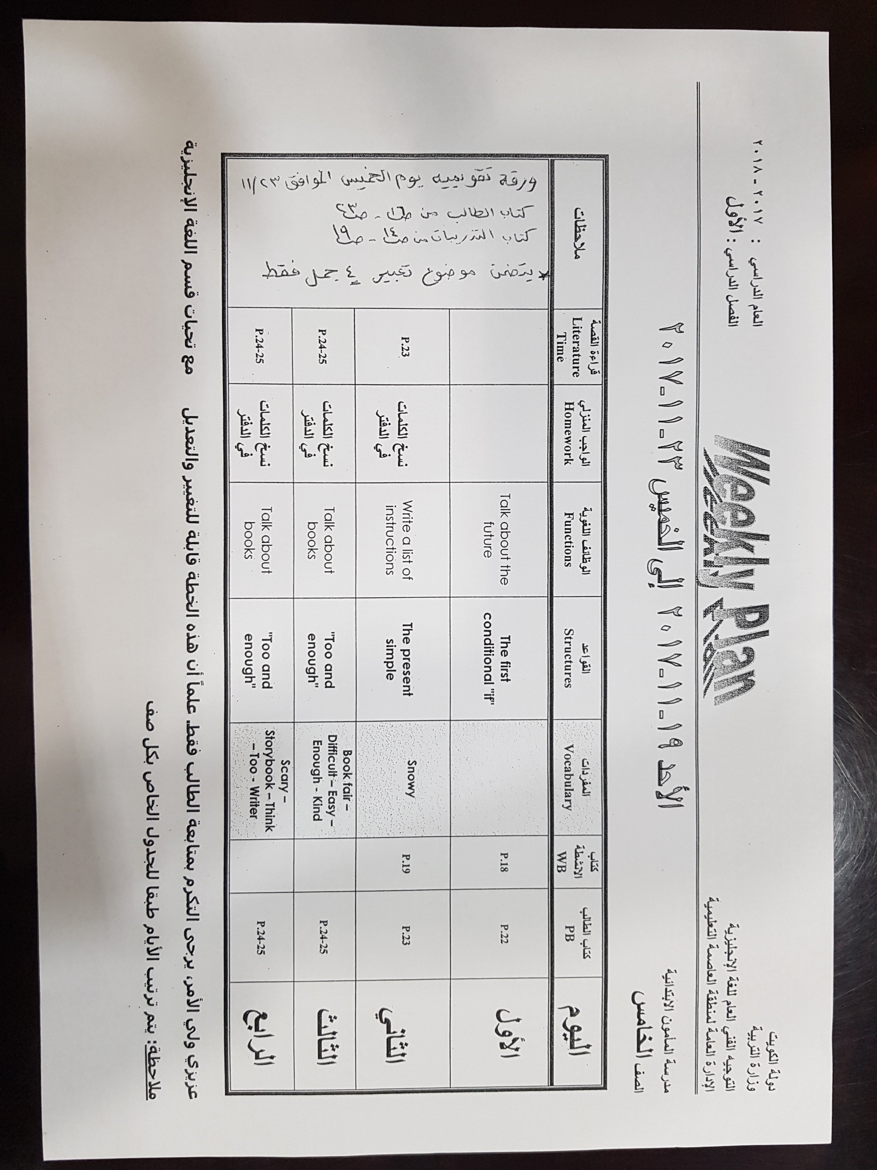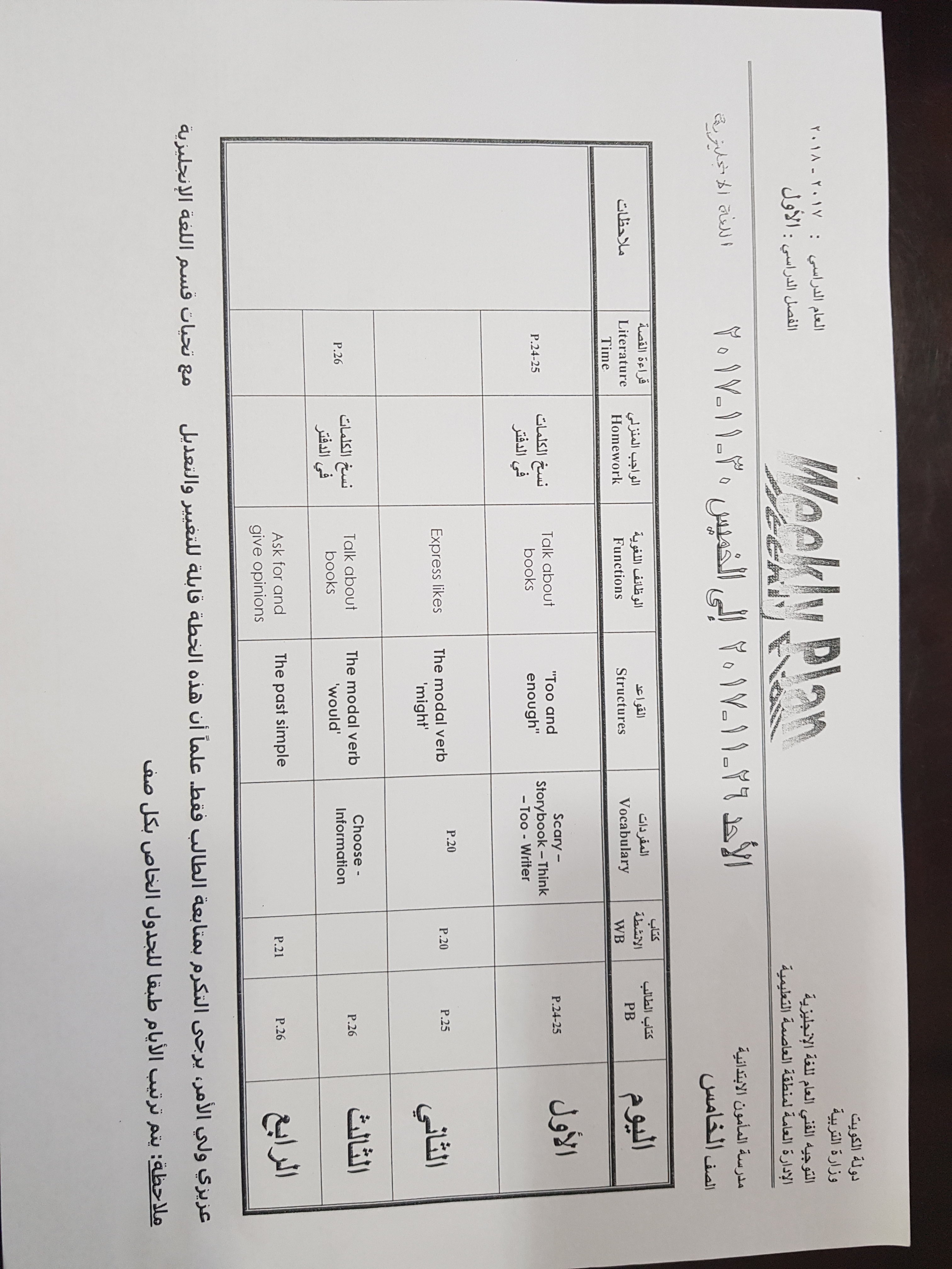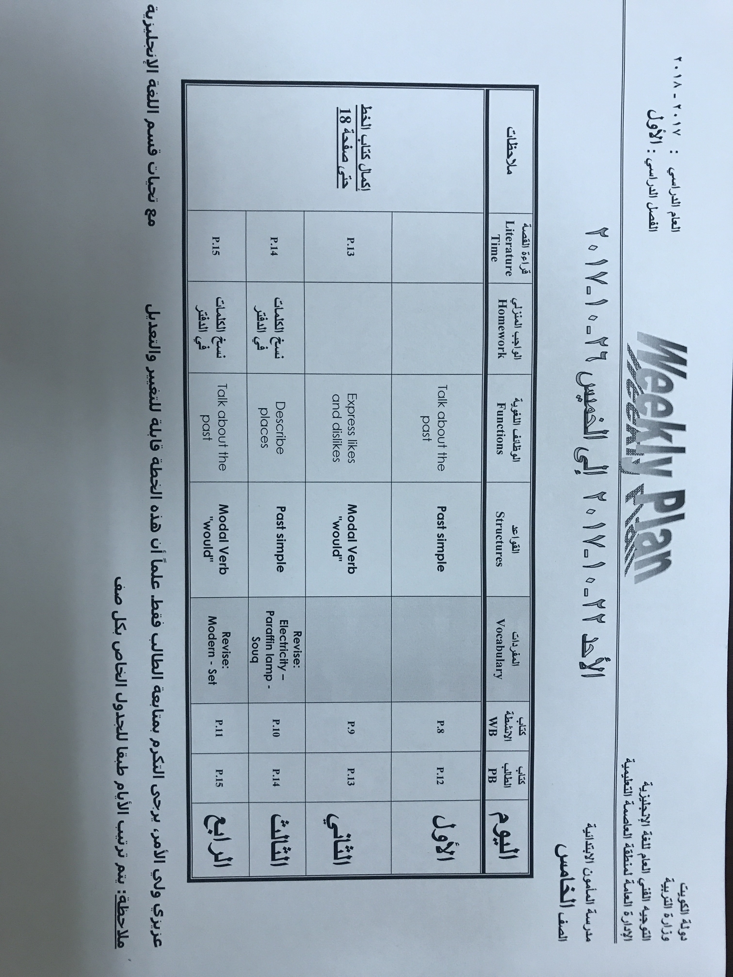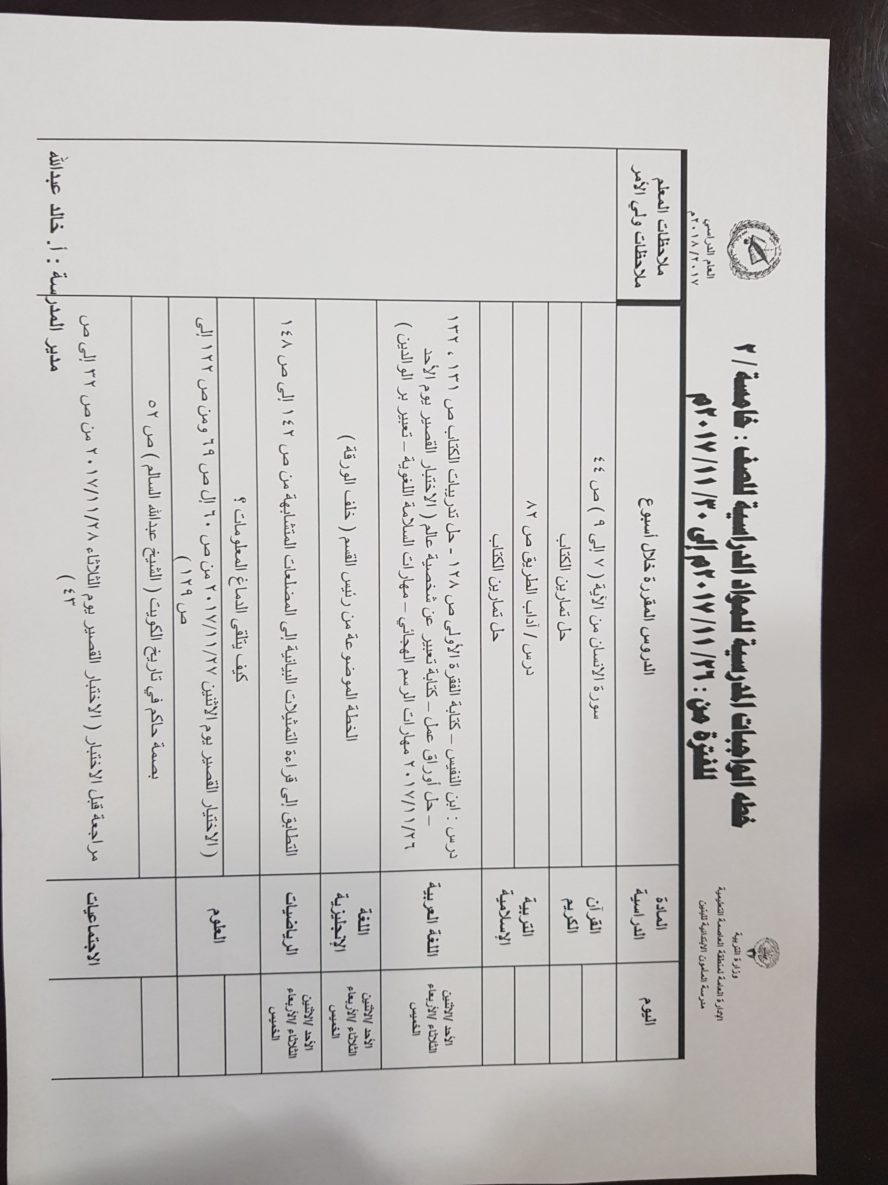 جدول اختبارات الصف الخامس لنهاية الفصل الدراسي الاول