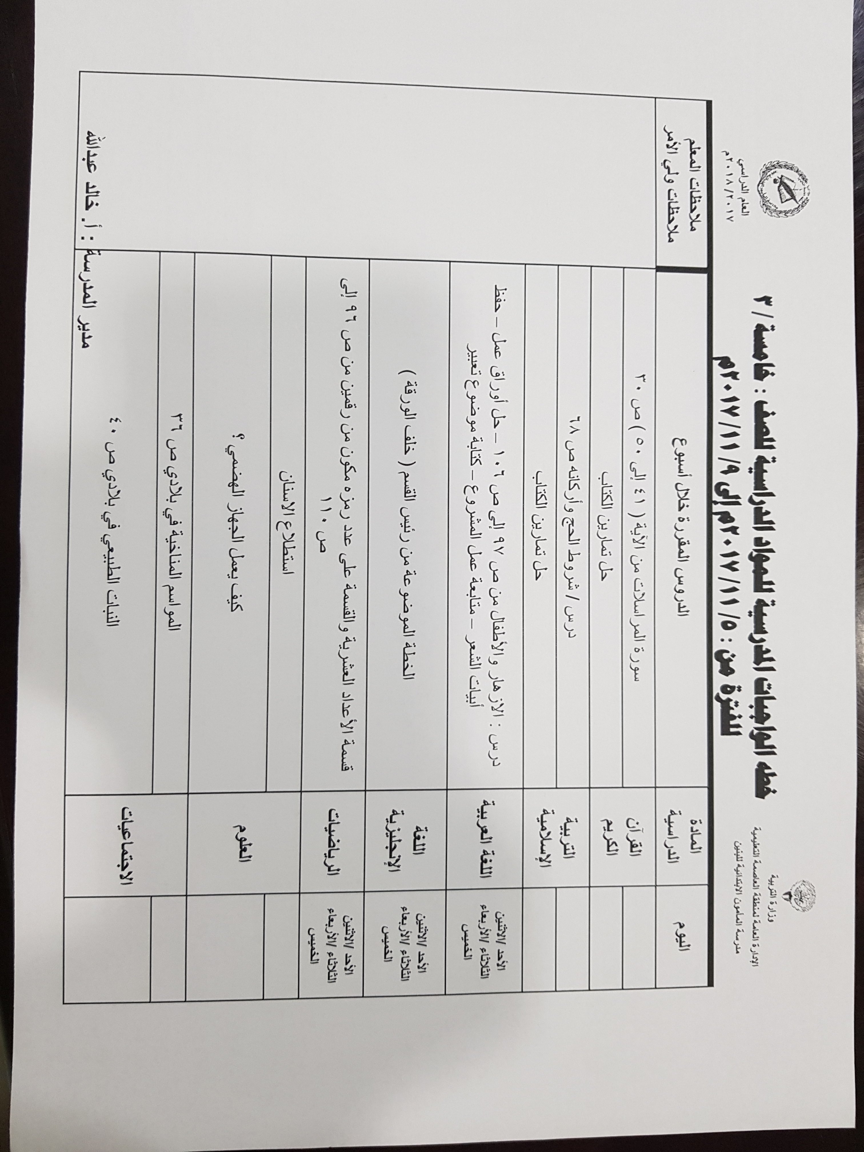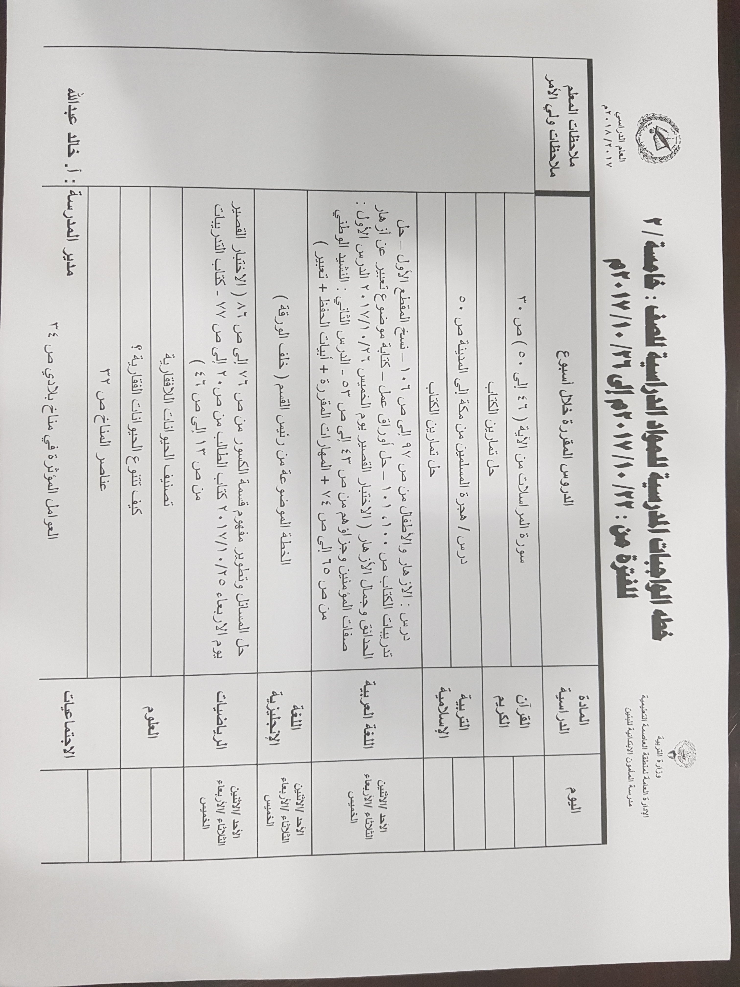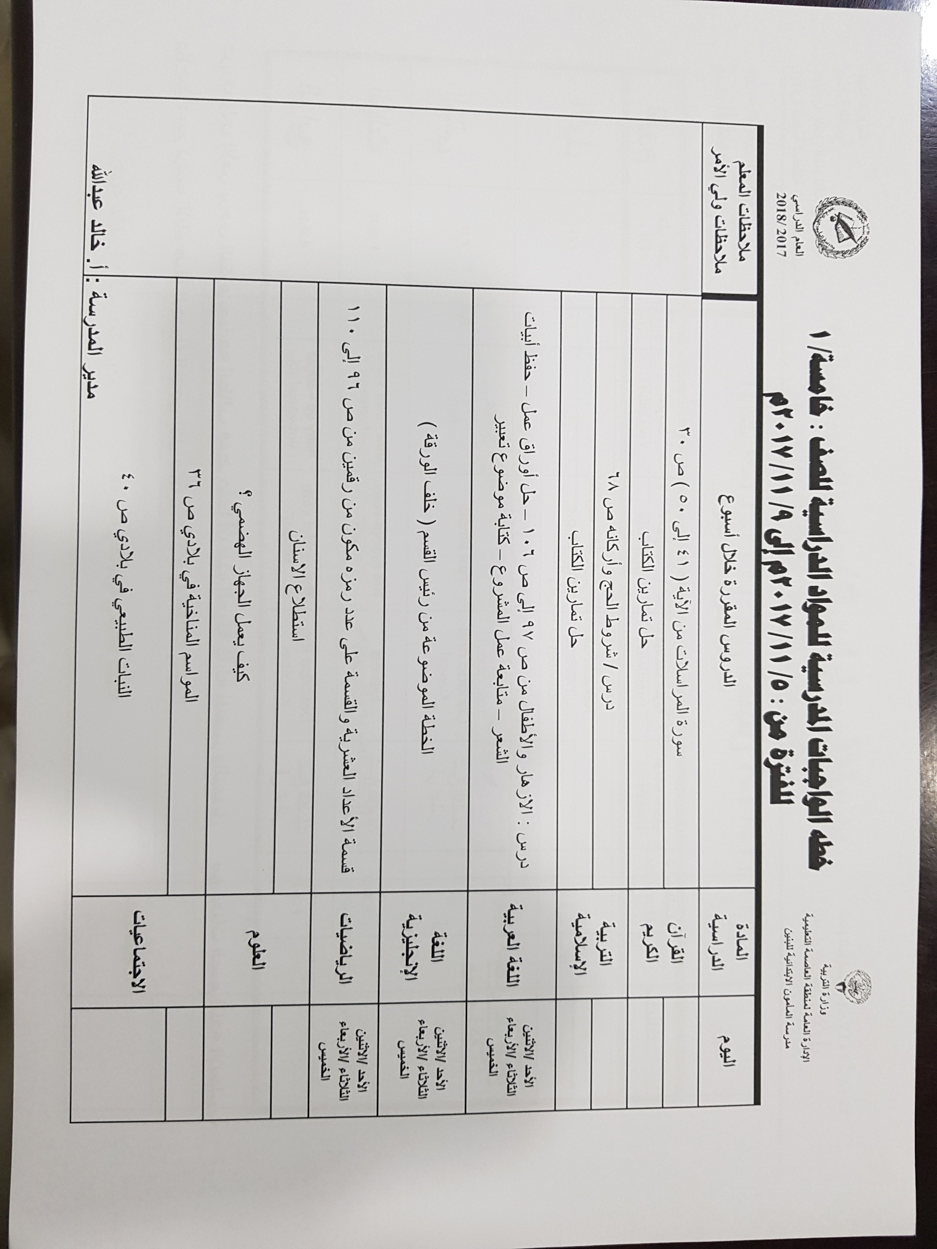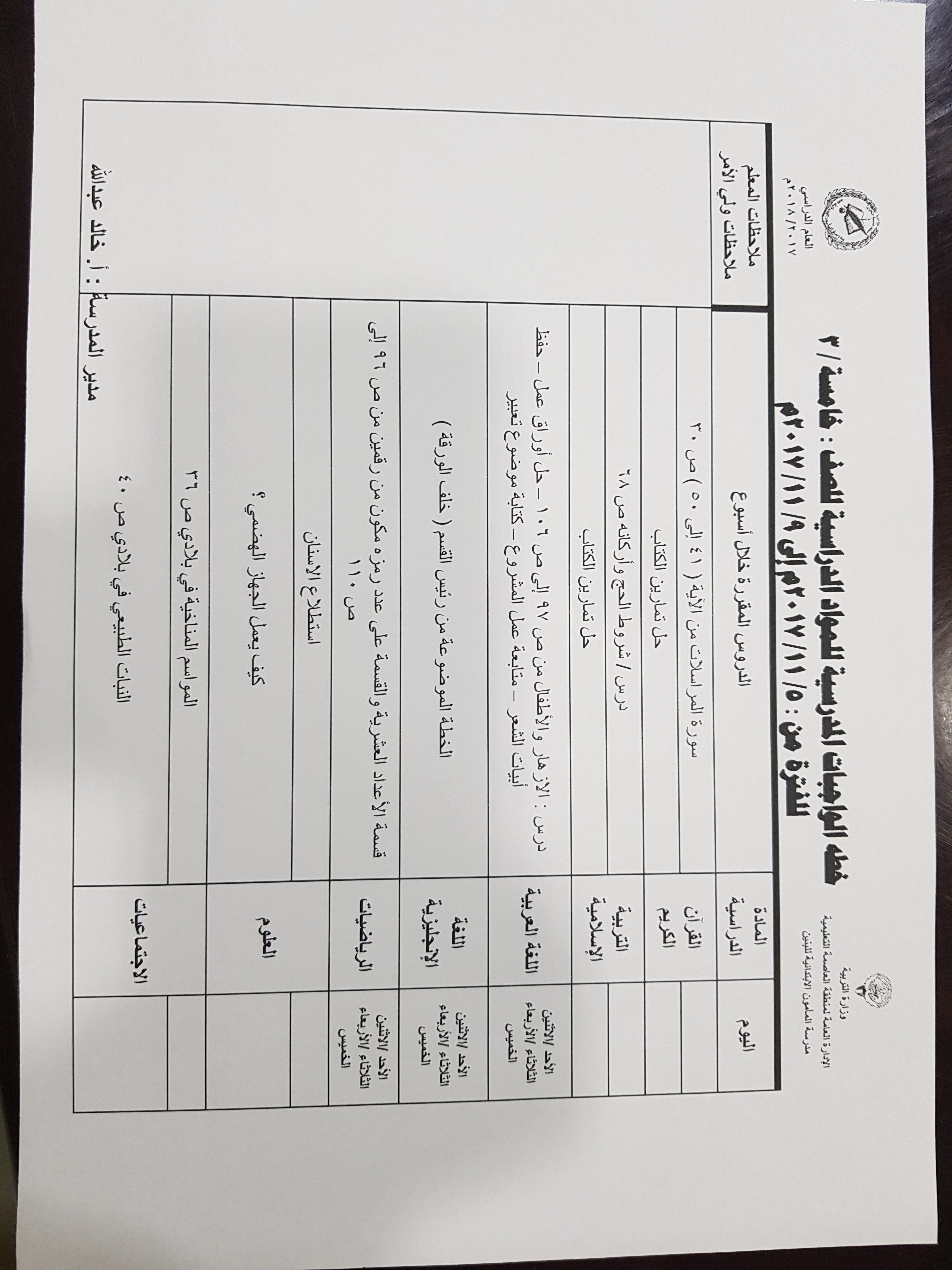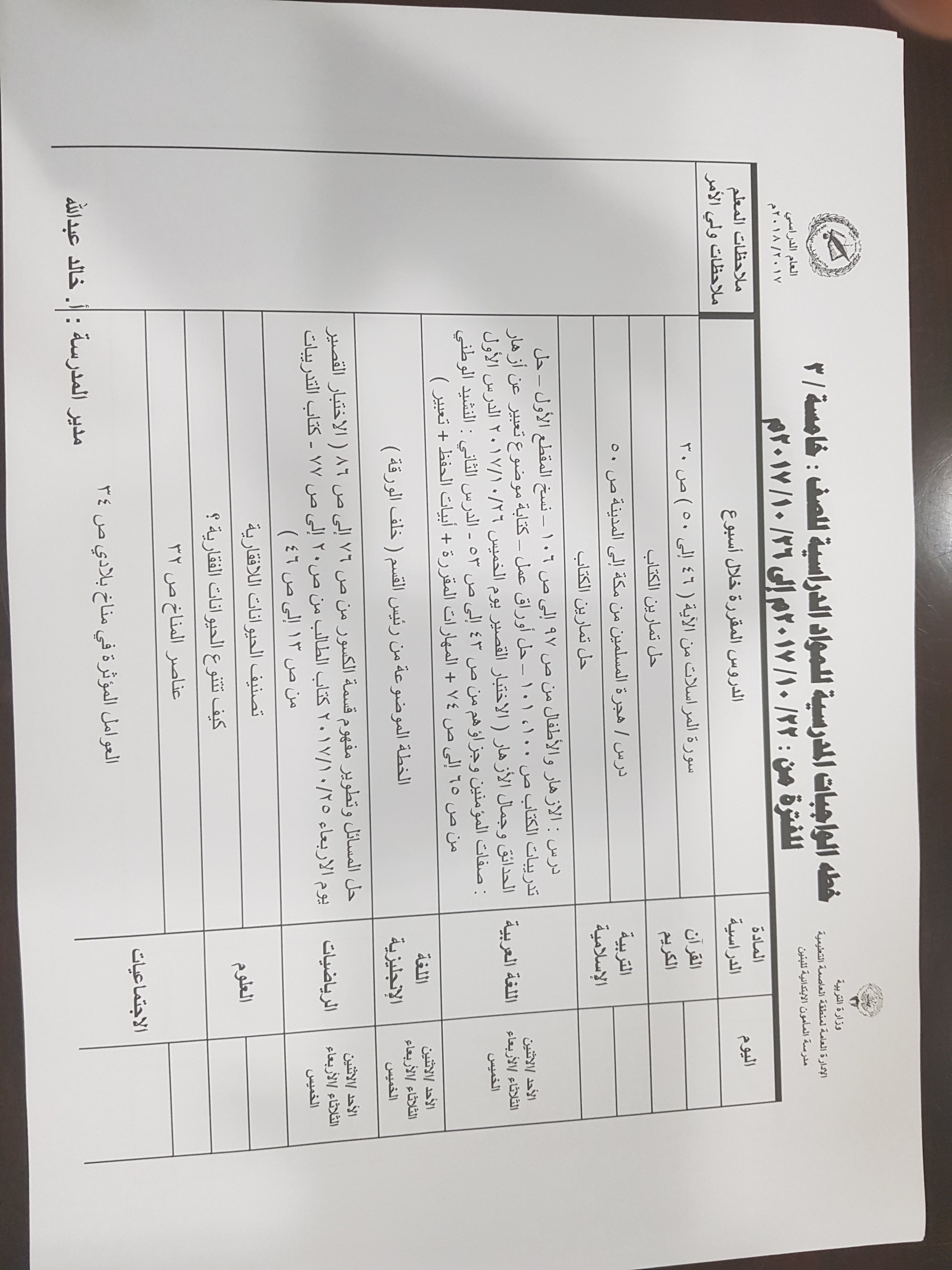 جدول اختبارات الصف الخامس لنهاية الفصل الدراسي الاول